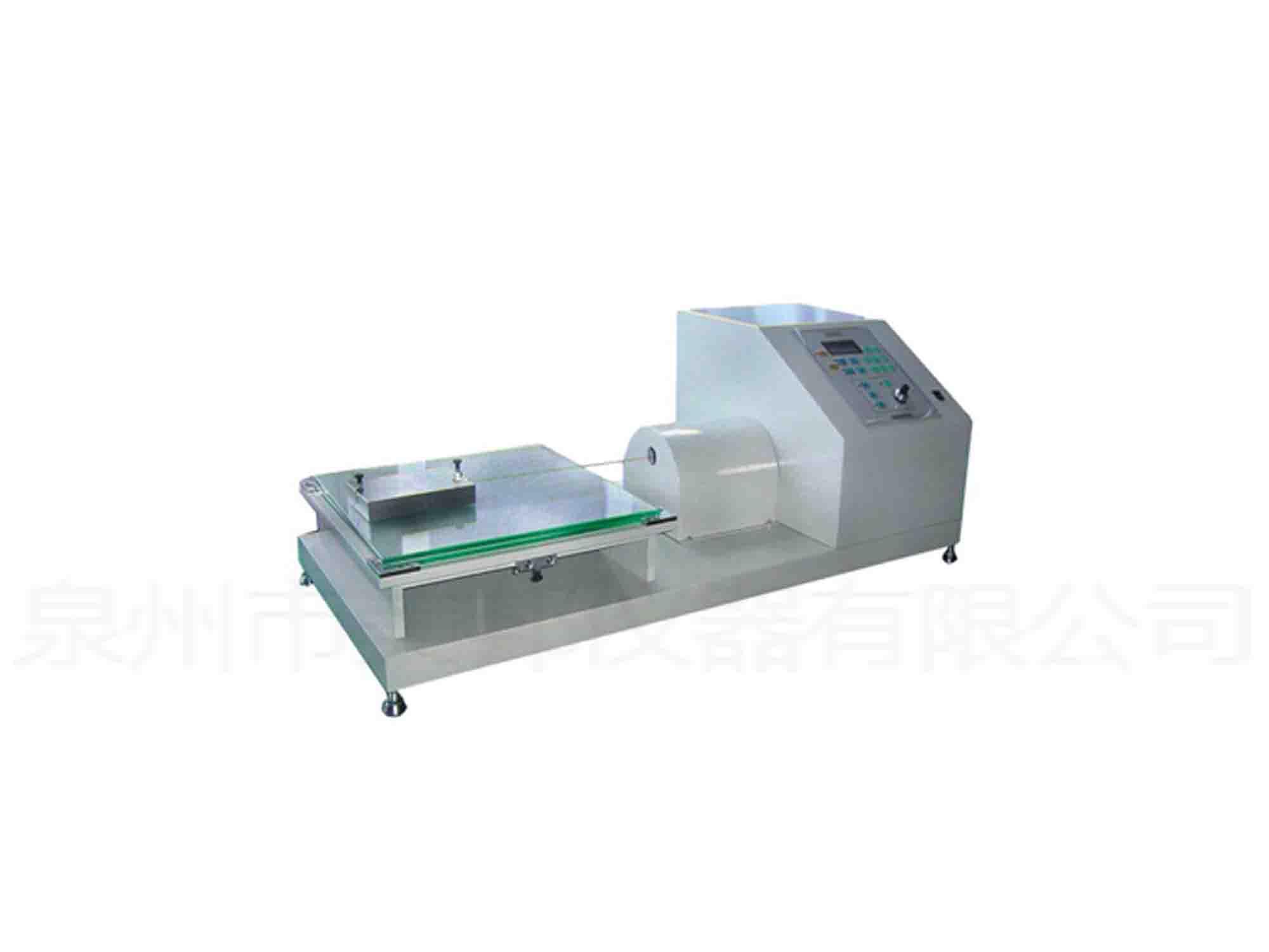 This machine is suitable for testing the static antiskid performance of the shoes outer bottom, heel or related outsole. The sample level will be specified in the standard requirements of the friction panel placed on the specimen to be measured, face down, put some load, using the method of horizontal pull to a certain speed pull samples, measure the maximum tensile force, static friction coefficient is calculated, by measuring the static slip resistance. Static antiskid performance refers to the anti skid ability of an object at a horizontal surface when it is moved at a static state.