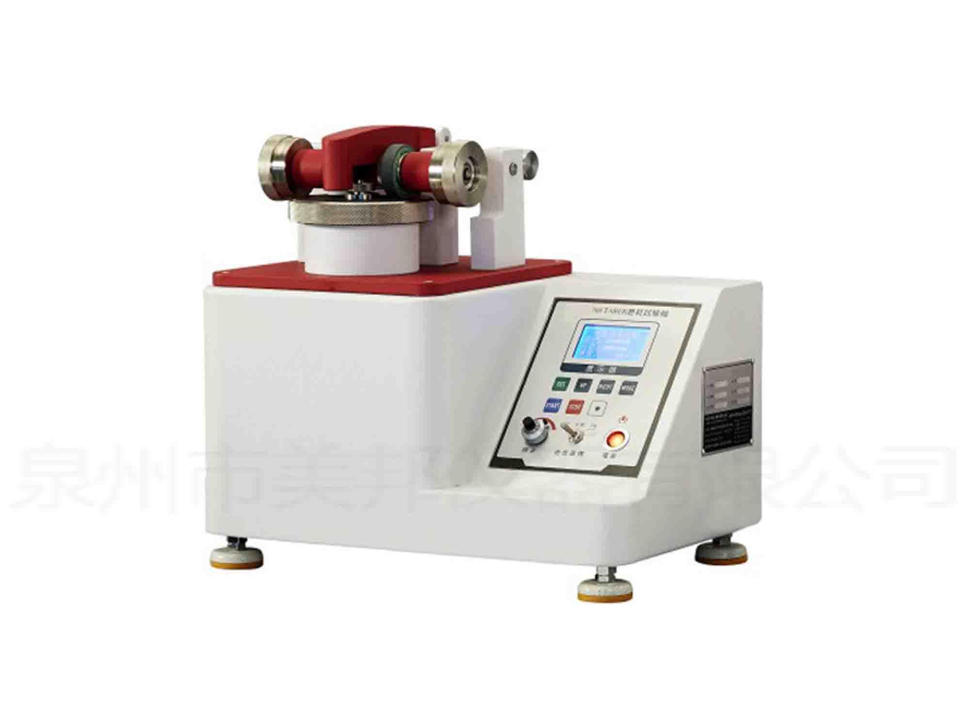 This machine is used for abrasion test paper, cloth, leather, paint, plywood, ceramic tile, rubber and plastic etc. When testing, place the test piece on the rotary disk, while the abrasion wheel is added to the test piece, and lay the specified loading weight on the wear wheel, then start the machine to make the wear wheel and the sample rub each other, so as to calculate the wear resistance of the specimen before and after the test.